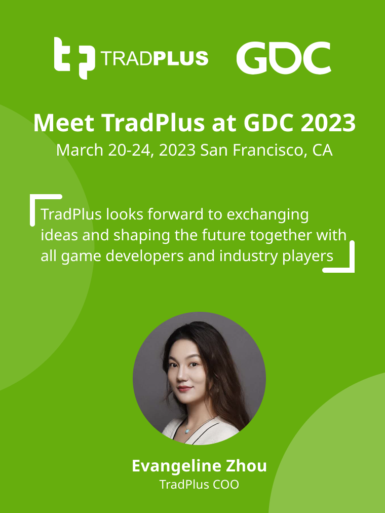 TradPlus COO Evangeline Zhou 将在 2023 GDC 与大家会面,我们期待与全球的游戏开发者共同交流,分享在出海变现上的疑问和心得,交流行业变现新趋势。