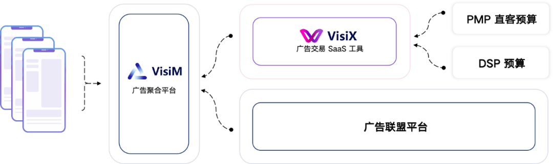 - 该工具应用通过 TradPlus 广告交易 SaaS 平台 VisiX 直接承接 PMP 订单、品牌预算和其他高质量的 DSP 根预算,通过 TradPlus 广告聚合平台 VisiM 接入优质广告联盟预算。通过两个产品的高效联动和精细化的广告竞价方案,让不同预算之间相互补充、充分竞价,有效提升广告填充、eCPM及整体的广告收益。